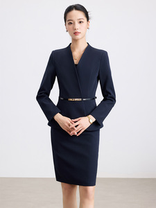 藏青色西装+腰带+裙子