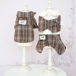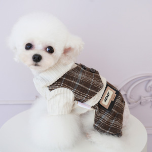 狗狗宠物衣服秋冬装猫咪帅气格子套装中小型犬泰迪比熊冬装批发