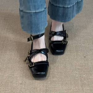 设计感法式复古女士方头浅口单鞋夏季时尚交叉绑带皮带扣玛丽珍鞋