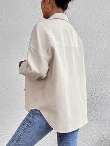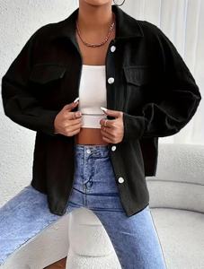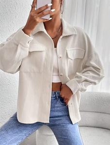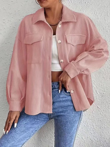 跨境欧美女装2025亚马逊独立站灯芯绒女式衬衫纯色文理长袖外套女