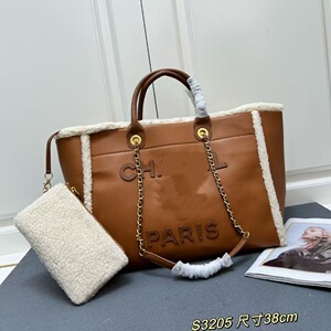 小香风托特包冬季款女时尚单肩斜挎包大容量羊羔毛拼真皮通勤包