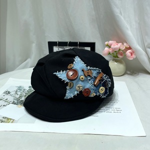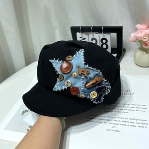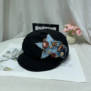 甜美可爱星星纽扣小狗贴布贝雷帽子女小众设计款画家报童帽八角帽