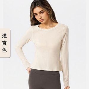 秋冬新款羊毛长袖运动T恤上衣女圆领透气健身跑步训练内搭瑜伽服