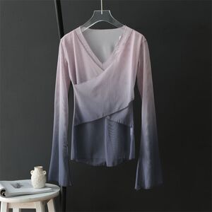 古典舞女渐变喇叭袖飘逸身韵纱衣练功服形体中国舞艺考训练演出服