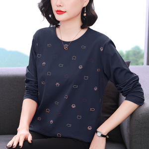 妈妈装2025秋季新款长袖女T恤高级感小众设计宽松显瘦拼接上衣女