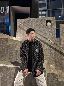 MLB韩国高版老花牛仔男女衬衫时尚宽松休闲情侣秋冬新款外套百搭
