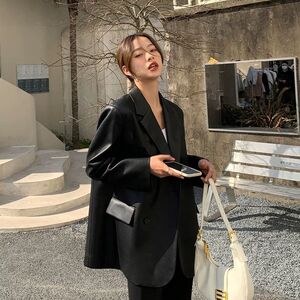 黑色西装皮衣外套女2025新款PU皮感宽松显瘦休闲皮西服