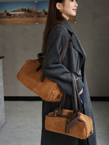 气质奢华真皮女包2025新款高级感麂皮绒牛皮单肩包大容量托特包女