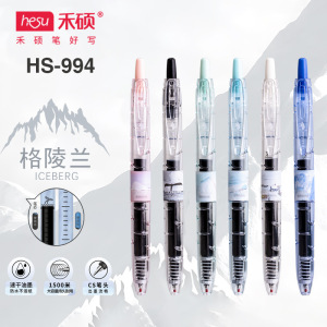 禾硕994格陵兰0.5学生办公大容量双珠速干CS头黑色按动中性刷题笔