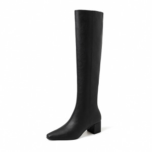 腿精大长腿全牛皮骑士靴2025秋冬粗中跟小方头套筒真皮高筒长靴女