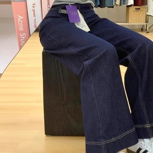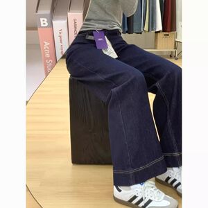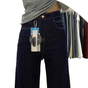 丹宁蓝美式保暖牛仔裤女秋冬新款加绒加厚高腰宽松显瘦喇叭阔腿裤