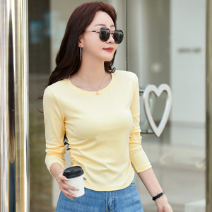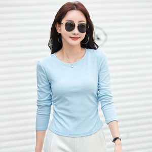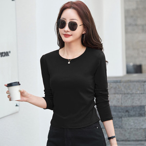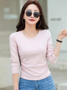 524秋季打底衫女圆领内搭2025新款显瘦长袖t恤百搭洋气上衣女纯色