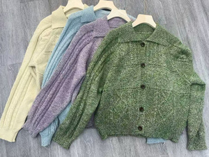 羊驼绒翻领勾花针织毛衣女宽松外贸跨境开衫秋冬上衣外套女装批发