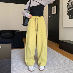 钛金棉阔腿裤女春秋2025新款高腰垂感宽松直筒休闲大码弯刀工装裤