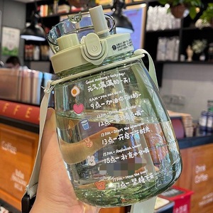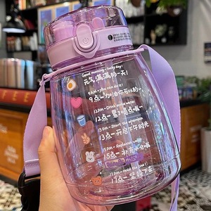 大容量塑料水杯网红布丁学生大肚杯儿童可爱便携卡通双饮吸管杯