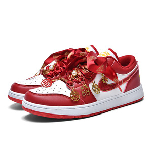 aj婚鞋秀禾服情侣款新娘子结婚红色订婚宴平底dunk板鞋运动敬酒鞋