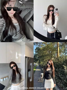 YUYUREAL 全色自留 妮味蕾丝v领吊带/针织空调开衫两件套