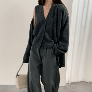 日韩慵懒风时尚毛衣两件套2025秋冬新款宽松长袖内搭马甲针织开衫