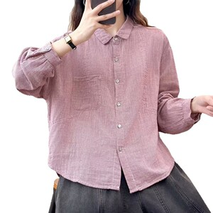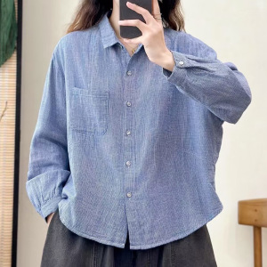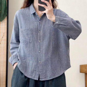 双层格子棉纱复古英伦风条纹翻领棉纱长袖衬衫百搭通勤休闲显瘦上