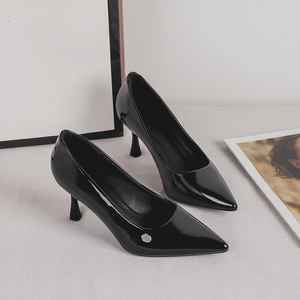 2025新款黑色职业尖头单鞋百搭设计感小众气质名媛高跟鞋女鞋细跟