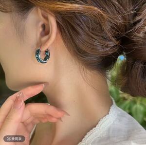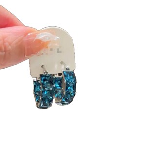 跨境时尚耳圈蓝水晶轻奢耳环夸张电镀方形简约耳坠甜酷女士高级感