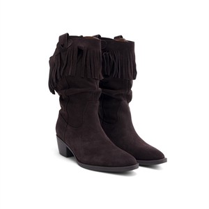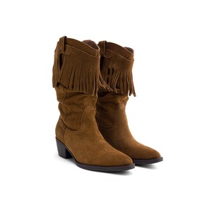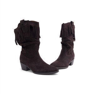 SGIRL TWTW美拉德西部牛仔靴中筒靴流苏褶皱堆堆靴尖头骑士靴2025