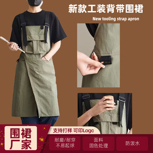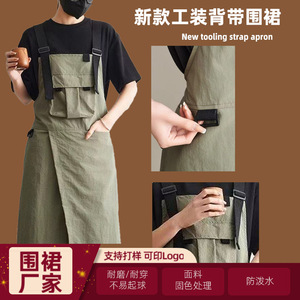 【工作服围裙家用防水烘焙餐饮专用背带围裙防油咖啡师围裙定制】