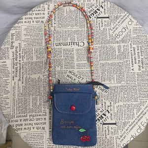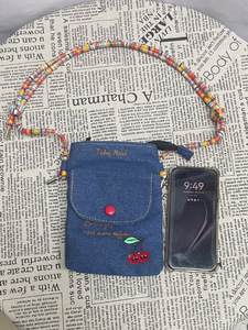 夏季新款绣花大容量单肩小斜挎包清新百搭通勤高颜值牛仔布手机包