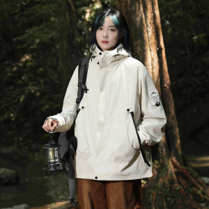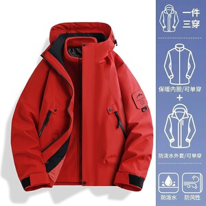 山系户外冲锋衣男防风防泼水两件套加绒加厚登山服女夹克连帽外套