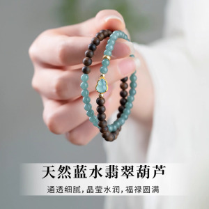 明星同款沉香手链天然蓝水翡翠沉香木手链女蓝水翡翠葫芦手串礼物