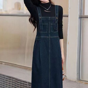 早秋新款日常休闲显瘦复古时尚减龄牛仔背带裤背带裙抖音爆款