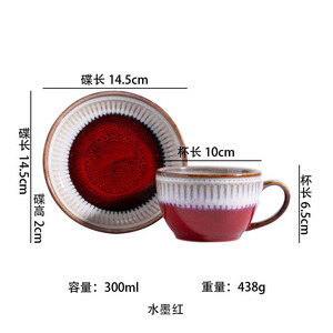 复古浮雕咖啡杯碟简约家用下午茶杯高颜值咖啡碟杯子