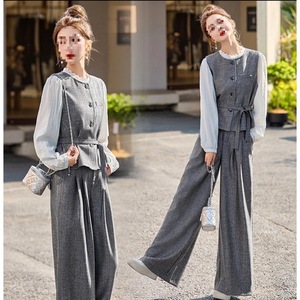 韩系穿搭马甲套装女2025春季新款气质干练显瘦通勤阔腿裤三件套潮