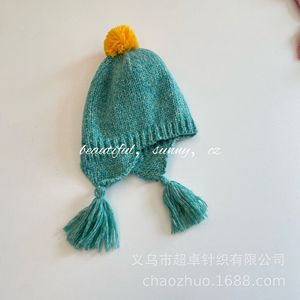 冬季可露丽风撞色球球针织护耳帽儿童复古毛线帽