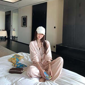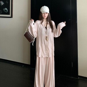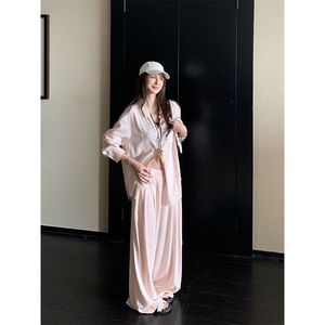 粉色时尚开衫纯欲睡衣女款秋季2025新款大码长袖长裤套装可外穿