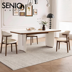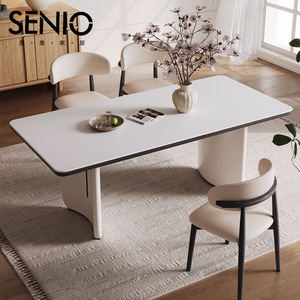 实木餐桌法式奶油风岩板餐桌椅组合饭桌家用高级感小户型餐厅桌椅