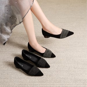 不累脚百搭粗低跟单鞋2025秋新款黑色法式气质尖头水钻浅口单鞋女