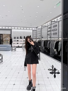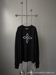高品质SFMK十字架印花复古阔身宽松圆领纯棉百搭黑T恤休闲打底衫