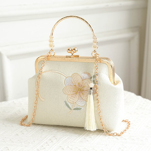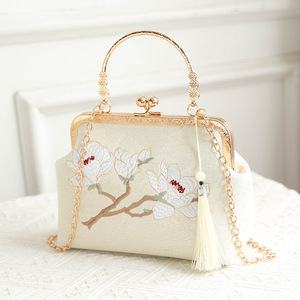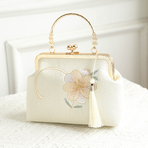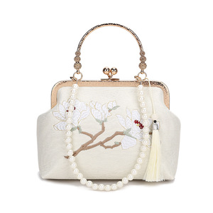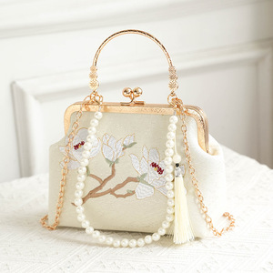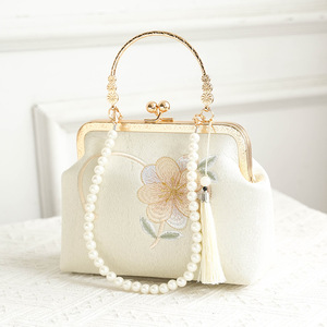 刺绣汉服包时尚素雅手提旗袍包包小众国风单肩斜挎珍珠百搭口金包