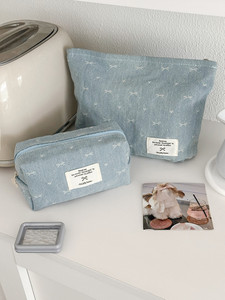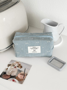 复古牛仔蝴蝶结化妆包简约少女外出旅行便携化妆品收纳包