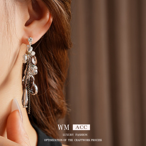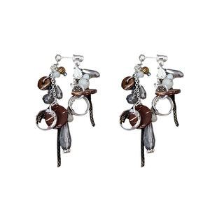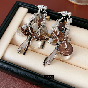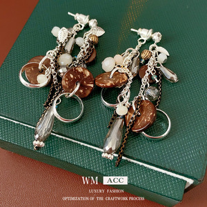 银针复古镶钻椰壳流苏耳环时尚百搭耳钉民族风夸张耳饰设计感小众