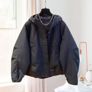 2025年新款冲锋衣女春秋季短外套设计感连帽长袖叠穿时尚外套