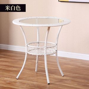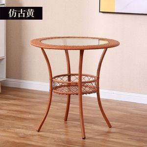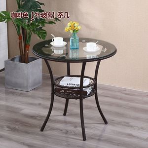 简约阳台休闲储物小圆桌迷你藤编钢化玻璃茶几圆形小茶几套装
