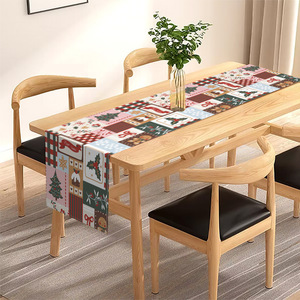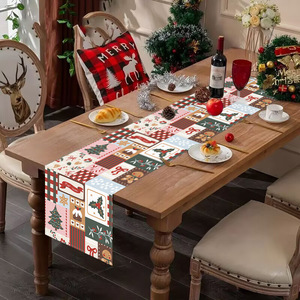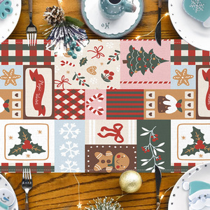 亚马逊新款圣诞节印花桌旗圣诞树姜饼人拼图桌布节日气氛装饰桌垫