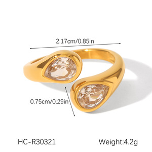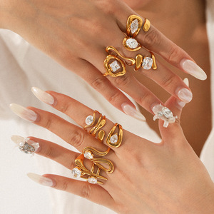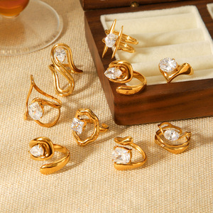 跨境欧美锆石戒指女不掉色钛钢戒指小众高级感开口戒指不锈钢ring