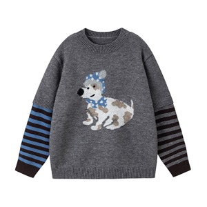 Fudge Pink 25秋季New甜美少女狗狗图案宽松套头毛衣