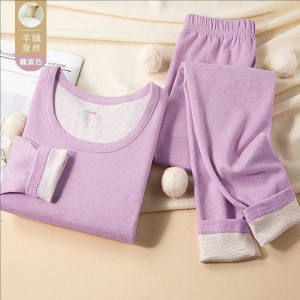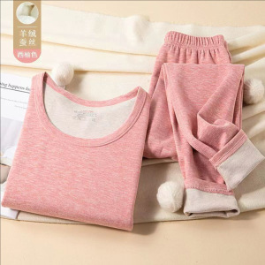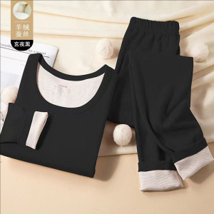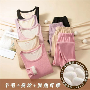 秋冬防寒保暖套装加绒加厚无痕羊毛蚕丝恒温德绒秋衣内穿女打底衫