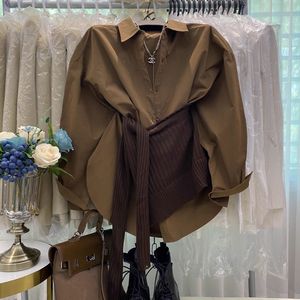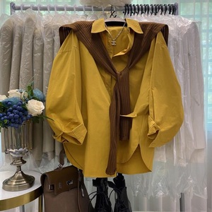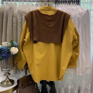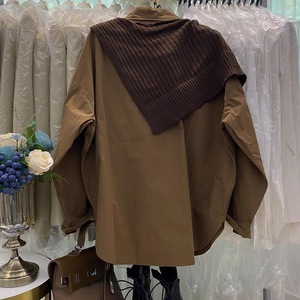 秋季新款韩版清新翻领慵懒风宽松长袖衬衫外套针织披肩显瘦套装女