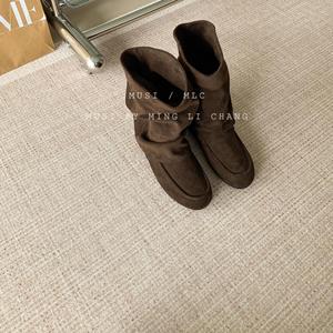 内增高绒面裤管靴套筒堆堆靴女2025秋冬新款时装靴韩版勃肯短靴女