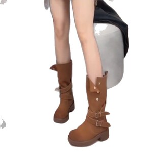 2025新款复古磨砂两穿靴子西部牛仔靴女秋冬新款平底圆头骑士靴